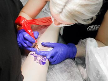 Подбирать краски и иглы, оборудовать рабочее место, стерилизовать инструменты и работать с тату-машинкой.
